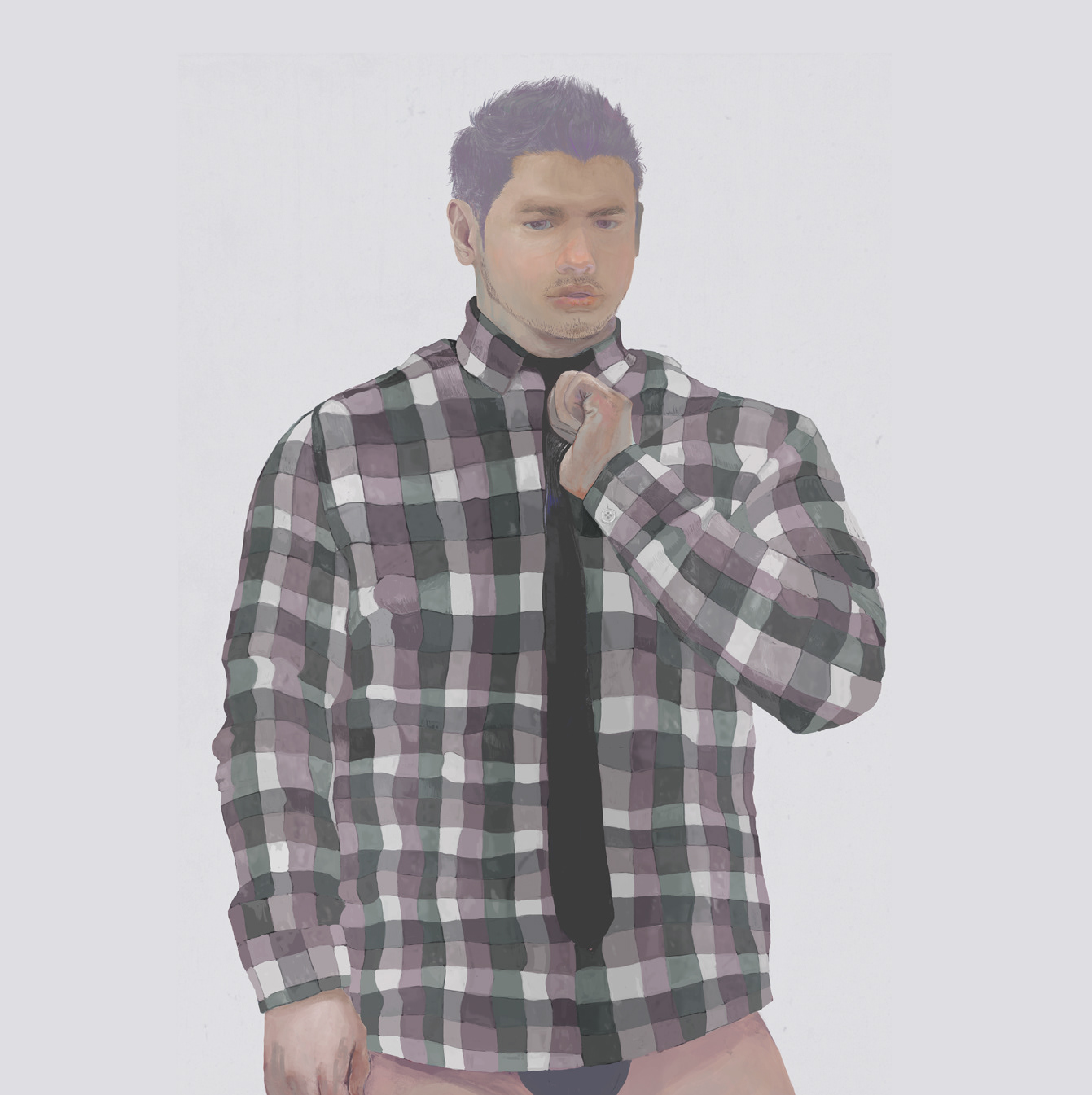 Check Shirt & Black Tie